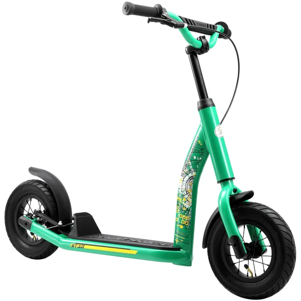 Altersempfehlung: 5-8 ans | Körpergröße: ab 96 cmTrittbretthöhe: 10.5 cm | Trittbrettbreite: 11 cm | Trittbrettlänge: 30.5 cm | Lenkerbreite: 52 cm | Lenkerhöhe: 65-77 cm | Gewicht : 7 kgGEEIGNET AB 5 JAHREN: Dieser Scooter ist für Kinder ab 5 geeignet und ab einer Körpergröße von 96 cm. Der Lenker ist höhenverstellbar, sodass er auch nach einem Wachstumsschub noch passtHOHER FAHRKOMFORT: Die Luftreifen federn den Scooter und sorgen für einen hohen Fahrkomfort. Er kann auf fast jedem Gelände gefahren werden und läuft selbst auf unebenem Untergrund ruhiger. Durch das tiefe Profil der Reifen hat der Roller selbst bei Nässe hervorragenden GripTREUER BEGLEITER: Der Scooter ist mit einem rutschfesten Trittbrett ausgestattet und hat einen sehr stabilen Stahlrahmen sowie Aluminiumfelgen. Der Lenker ist von 65 – 77 cm einstellbar und passt somit auch noch nach einem WachstumsschubTOLLES FEATURE: Eine Besonderheit des Rollers ist seine kugelgelagerte Lenkung, die für ein besonders leichtgängiges Lenken sorgtHOCHWERTIGE, UNBEDENKLICHE TEILE: Wir verwenden bei unseren Produkten nur hochwertige Materialien, unbedenkliche Lacke und geprüfte Griffe. Für eine gesunde Entwicklung des Kindes sorgt der ergonomisch ausgerichtete Lenker, wodurch eine natürliche Haltung erlernt wirdLaufradgröße: 10 Zoll (25.4 cm)Material Rahmen : StahlBremse vorne : Nein, n/aBremse hinten : Ja, BandbremseKlappbar: NeinFederung: NeinSchutzbleche: JaMaterial Schutzbleche: StahlSeitenständer: JaReifenart: LuftreifenHöhenverstellbar: JaStufenlos höhenverstellbar: JaGewicht max: 50 kg