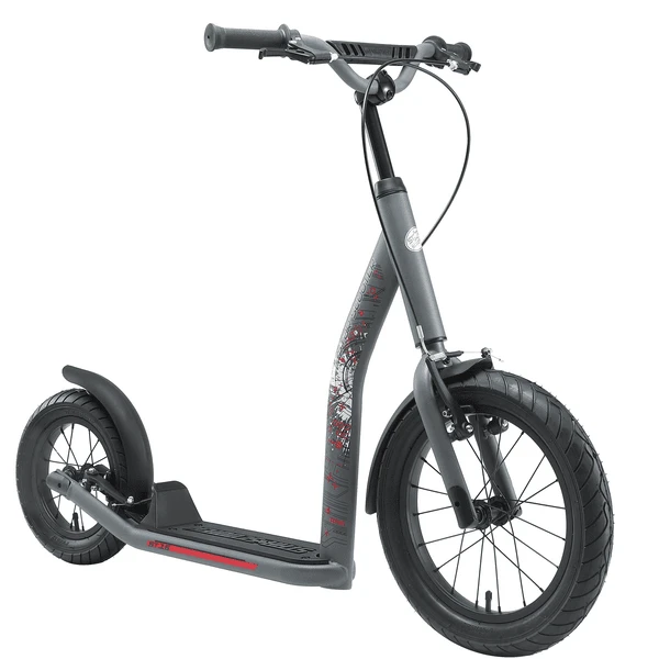 Altersempfehlung: 8-99 ans | Körpergröße: ab 140 cmTrittbretthöhe: 11 cm | Trittbrettbreite: 11 cm | Trittbrettlänge: 31.5 cm | Lenkerbreite: 57 cm | Lenkerhöhe: 85.5-100 cm | Gewicht : 9 kgGEEIGNET AB 8 JAHREN: Dieser Scooter ist für Kinder ab 8 geeignet und ab einer Körpergröße von 140 cm. Der Lenker ist höhenverstellbar, sodass er auch nach einem Wachstumsschub noch passtHOHER FAHRKOMFORT: Die Luftreifen federn den Scooter und sorgen für einen hohen Fahrkomfort. Er kann auf fast jedem Gelände gefahren werden und läuft selbst auf unebenem Untergrund ruhiger. Durch das tiefe Profil der Reifen hat der Roller selbst bei Nässe hervorragenden GripTREUER BEGLEITER: Der Scooter ist mit einem rutschfesten Trittbrett ausgestattet und hat einen sehr stabilen Stahlrahmen sowie Aluminiumfelgen. Der Lenker ist von 85.5 – 100 cm einstellbar und passt somit auch noch nach einem WachstumsschubTOLLES FEATURE: Eine Besonderheit des Rollers ist seine kugelgelagerte Lenkung, die für ein besonders leichtgängiges Lenken sorgtHOCHWERTIGE, UNBEDENKLICHE TEILE: Wir verwenden bei unseren Produkten nur hochwertige Materialien, unbedenkliche Lacke und geprüfte Griffe. Für eine gesunde Entwicklung des Kindes sorgt der ergonomisch ausgerichtete Lenker, wodurch eine natürliche Haltung erlernt wirdLaufradgröße: 16 Zoll (40.64 cm)Material Rahmen : StahlBremse vorne : Ja, FelgenbremseBremse hinten : Ja, FelgenbremseKlappbar: NeinFederung: NeinSchutzbleche: JaMaterial Schutzbleche: StahlSeitenständer: JaReifenart: LuftreifenHöhenverstellbar: JaStufenlos höhenverstellbar: JaGewicht max: 70 kg
